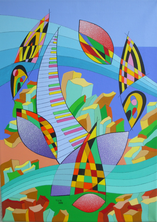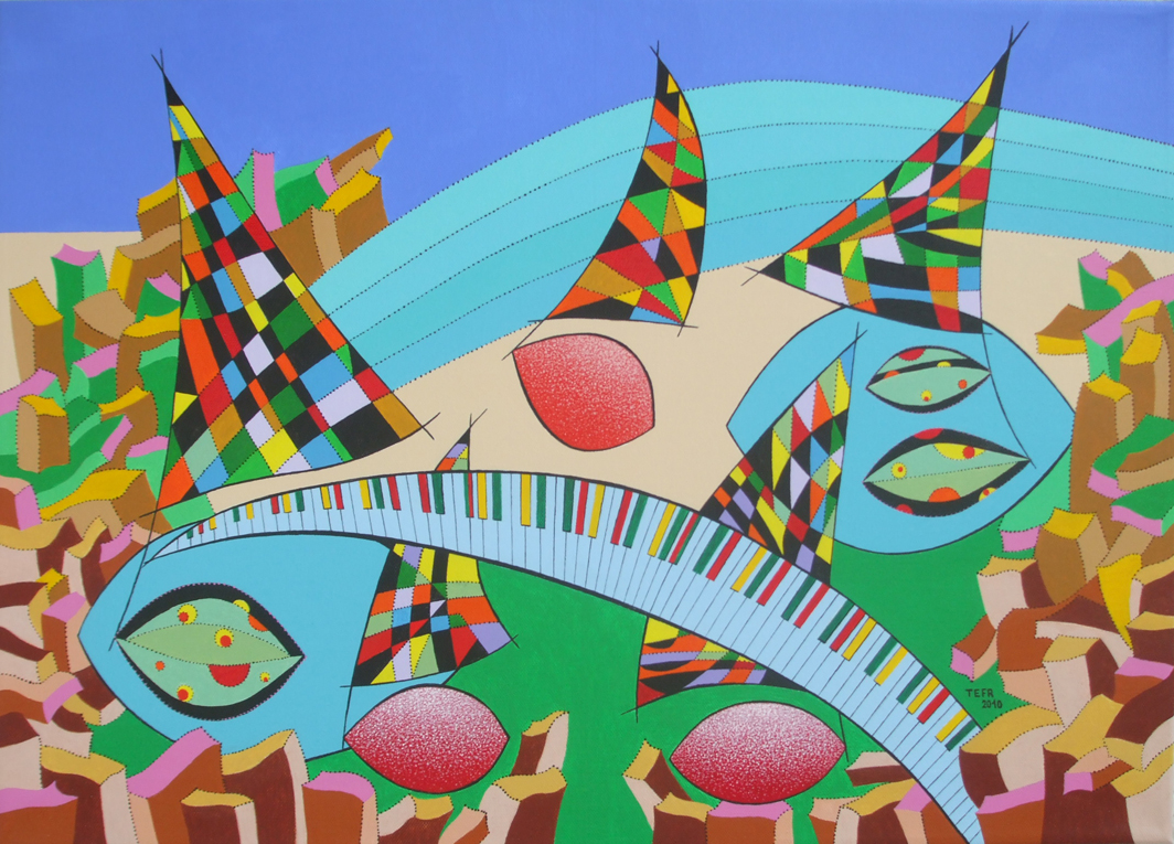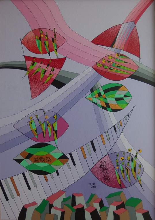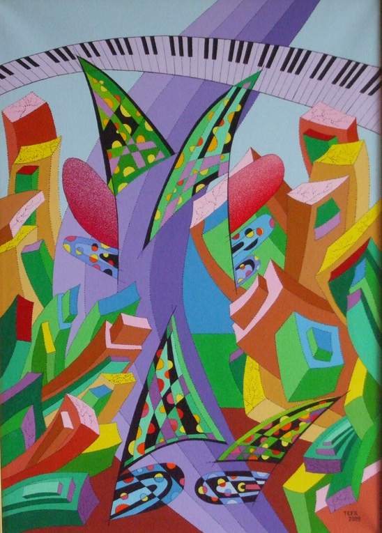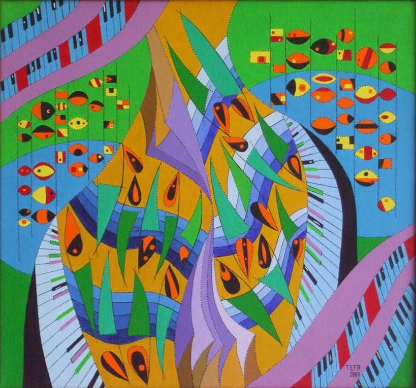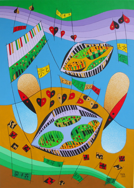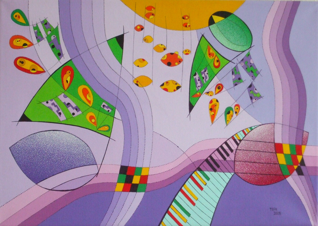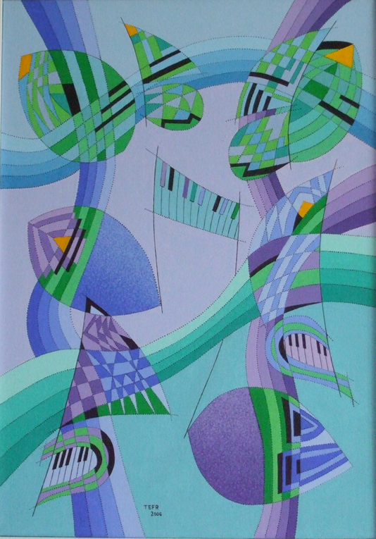 v kresbách, grafice a následně v malbě dendrity(dřevinami). Novou oblastí zájmu autora se od poloviny osmdesátých let stává hudba. Výchozím bodem těchto kompozic se staly prvky převzaté z hudebních záznamů. Tak se notová osnova,noty nebo klaviatura stávají základem nových situací a dějů.